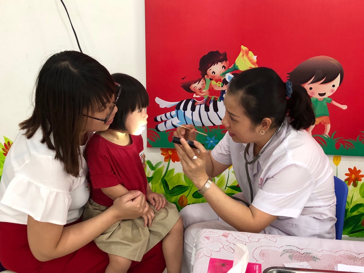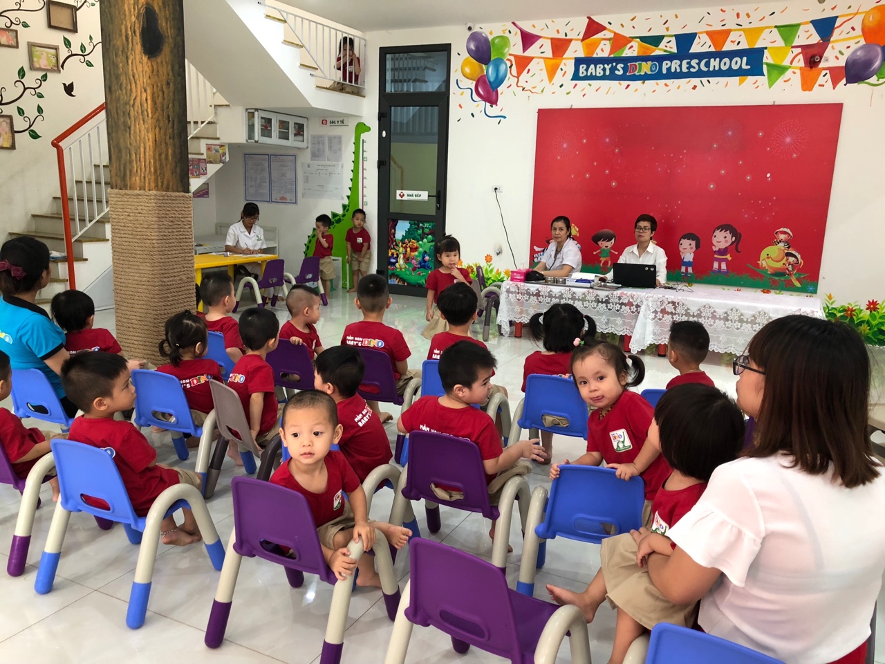 Khám sức khoẻ định kỳ cho các cháu là hết sức thiết thực và ý nghĩa thông qua việc khám sức khỏe định kỳ cho trẻ đã góp phần không nhỏ vào việc nâng cao nhận thức cho phụ huynh về ý thức phòng chống một số bệnh thường gặp ở lứa tuổi mầm non và cũng qua hoạt động này đã đem lại sự phấn khởi, tin tưởng trong các bậc phụ huynh về một môi trường giáo dục an toàn và thân thiện. Sau một buổi sáng làm việc nhiệt tình và trách nhiệm cao, 100% trẻ tại Mầm non Baby’s Dino đã được khám sức khoẻ và gửi kết quả về gia đình.