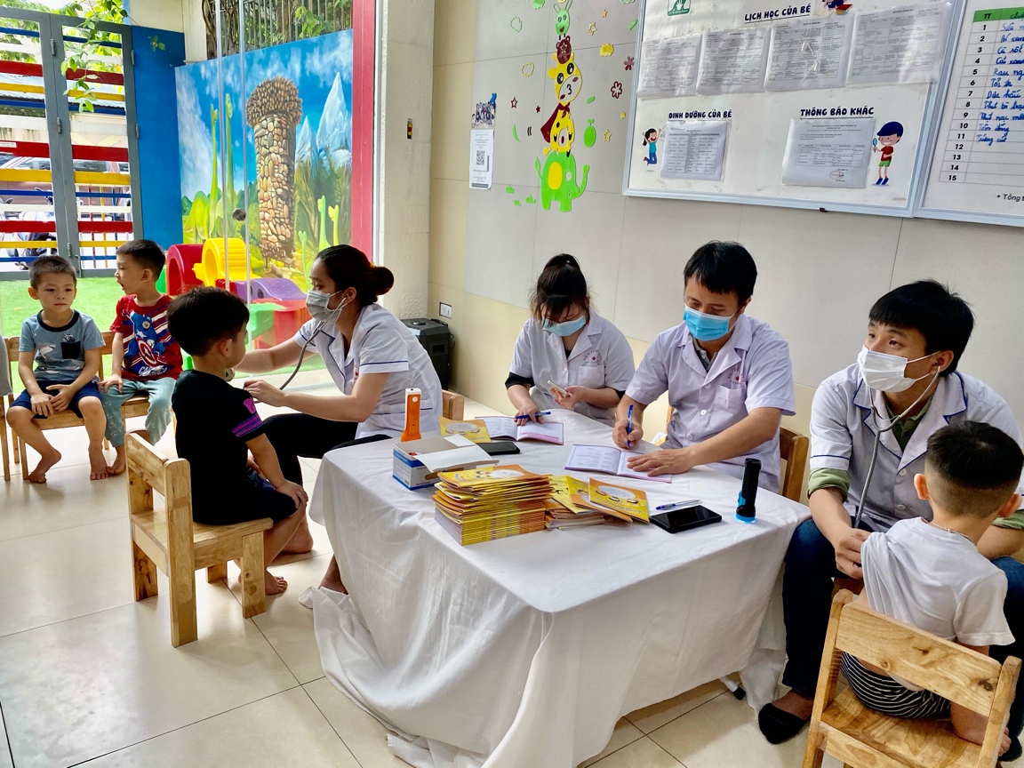 Trong các hoạt động giáo dục ở trưởng thì công tác chăm sóc sức khoẻ định kỳ cho trẻ là một việc làm luôn được nhà trường đặc biệt quan tâm