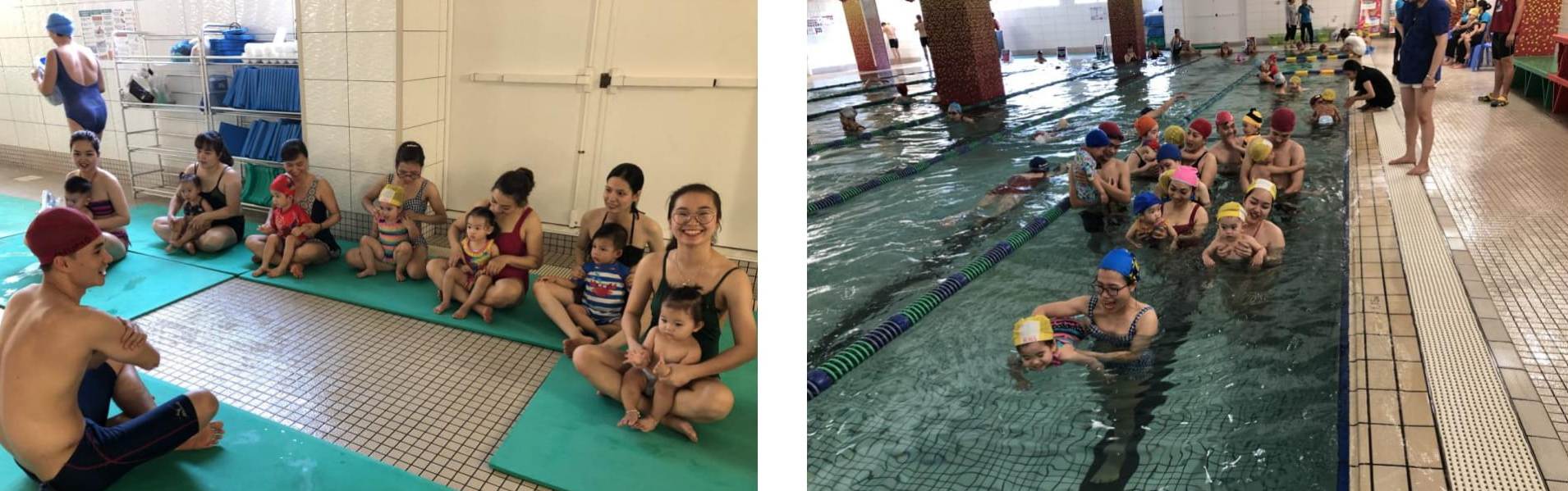 Với phương châm dạy bơi “Enjoy Swimming”, tại chương trình, Phụ huynh và các bé đã được các huấn luyện viên giới thiệu cách giúp bé làm quen, vui đùa với nước cũng như trang bị cho Phụ huynh những thông tin bổ ích về việc học bơi, học cách phòng chống đuối nước.