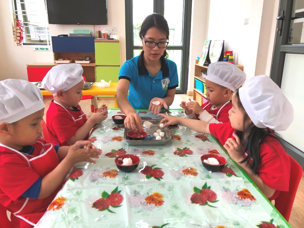 Các cô đã kể cho các con nghe về sự tích ngày tết Hàn thực, chắc giờ bé nào cũng hiểu “Hàn thực” là gì rồi các con nhỉ. Được nghe giới thiệu rất kĩ về nguyên liệu, cách làm bánh trôi bánh chay, nên khi thực hành nặn bánh, chẳng bạn nào bỡ ngỡ. Các bé đã tự tay mình làm ra những chiếc bánh tròn tròn, trắng trắng... và thêm hiểu hơn với tục làm bánh trôi bánh chay truyền thống trở thành nét đẹp của mỗi người Việt.