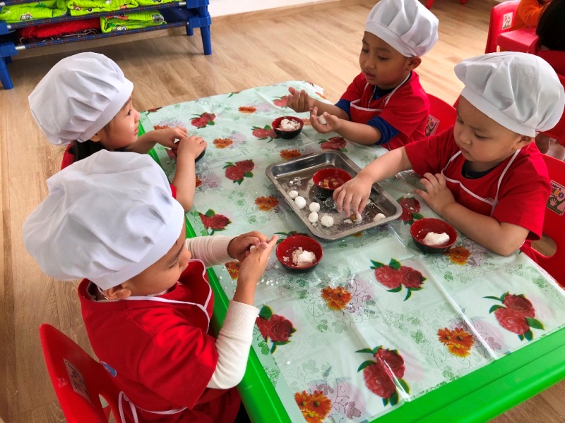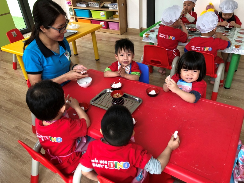 Và để giúp các bé phát triển tư duy, sáng tạo, biết giúp đỡ cha mẹ những việc làm đơn giản, ngày 05/04/2019 (tức mùng 1/3 Âm lịch), Cô và Trò của Mầm non Baby’s Dino đã cùng làm bánh trôi, bánh chay thật vui và ý nghĩa.
