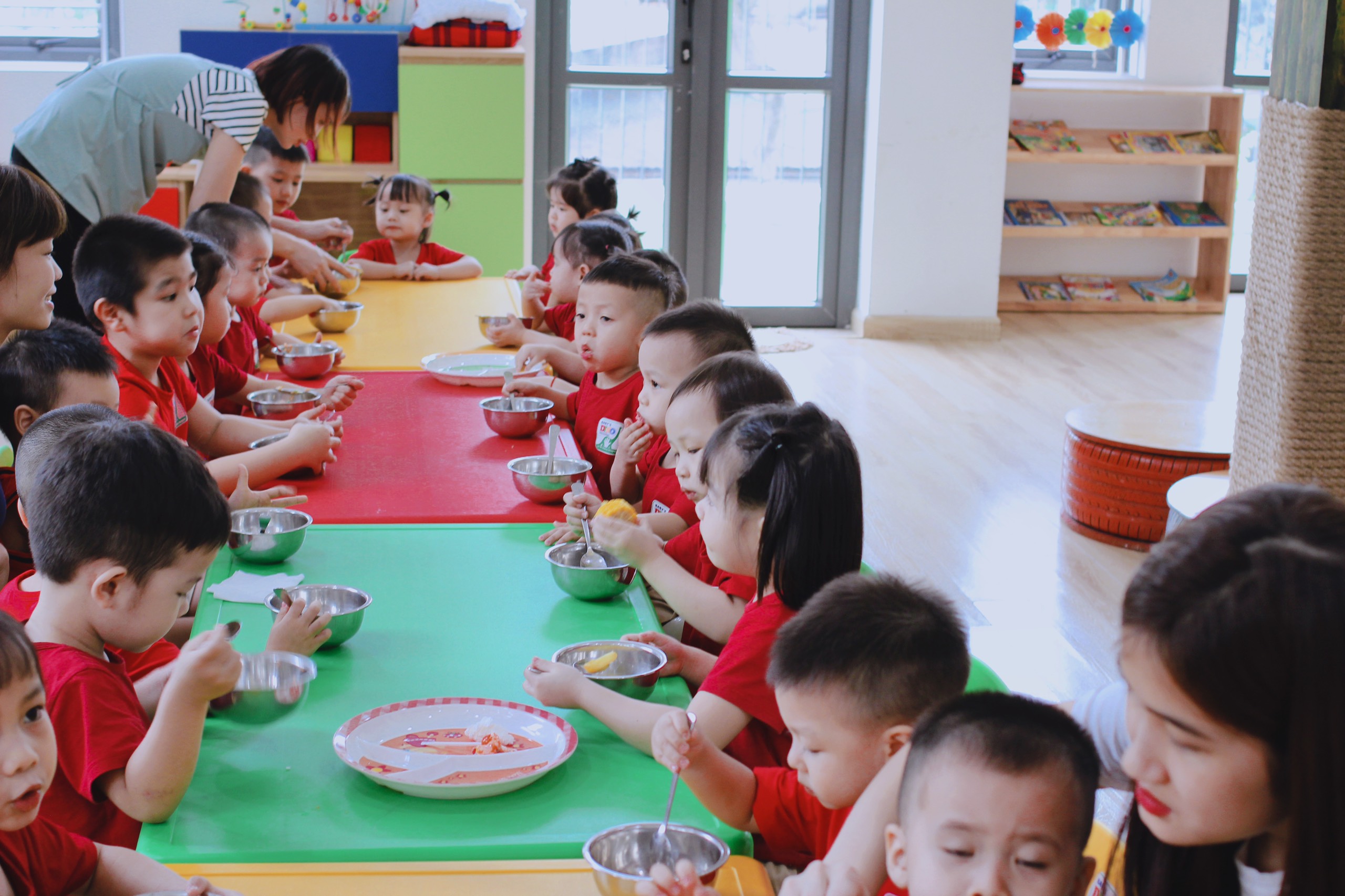 Các cô chuẩn bị cho ngày mồng 1.6 cũng đơn giản vì các con mới đi học trở lại sau một thời gian dài tránh đại dịch Covit 19. Đơn giản nhưng đem đến cho các con niềm vui trẻ thơ, các cô tổ chức chụp ảnh kỷ niệm cho các lớp; liên hoan Tiệc Buffet trưa và cuối cùng tặng quà 01/06 cho các con